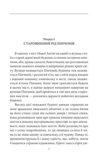 У романі «Будинок із сімома башточками» американський письменник Натаніель Готорн взявся розповісти історію занепаду колись численного роду Пінчонів. Прикметно, що передумовою всіх негараздів стала ненаситна жадоба його засновника полковника Пінчона. Накинувши оком на земельний наділ бідняка Метью Моула, він не тільки відібрав у того все добро, а й, звинувативши в чаклунстві, домігся його страти. Останні слова нещасного, як засвідчили людські перекази, були прокляттями. Вони окошувалися на всі покоління Пінчонів, від них не захищали масивні стіни родинного будинкувелета — він і сам ставав руїною, поки зло не було остаточно покарано, невинуватість відновлено, а страждання винагороджено.