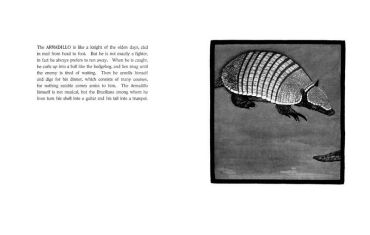 This charming volume is a facsimile of a children’s ABC of animals first published in 1899. Commissioned by Glasgow publisher Blackie & Son, it contains a short description and a full-page grisaille drawing for each animal, beginning with A for armadillo and ending with Z for zebra, with vignettes accompanying each letter of the alphabet. It was the first publication by Carton Moore Park, who specialized in animal subjects, and whose artistic style was strongly influenced by Japonisme. The quirky drawings, with the modern-looking crops and close-up perspective, made the book stand out from all other alphabets of the day. The plate of the hippopotamus, for example, conveys the great bulk of the animal by forcing it up against the frame, while the image of the bat has flying almost in the reader’s face. The picture of the leopard is one of several plates that reveal Moore Park’s interest in Japanese art. When the book was published, contemporary critics acclaimed the artist’s strong handling and accurate anatomical knowledge, as well as his profound appreciation of the habits and movements of the animals depicted and his close sympathy with his subjects. One wrote that, ‘It is certainly the best book of the kind we have ever seen.’ A hundred and twenty years after it was first published, this exquisite rediscovered book – very much of its moment but modern in spirit – will enchant and educate a new generation of children.