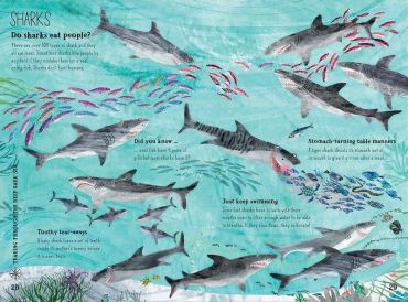 Yuval Zommer’s beautiful new book provides the answers to these and many more fishy questions. His wonderfully quirky illustrations show off all kinds of slippery, shimmery and surprising sea creatures, including sea turtles, whales, sharks, rays and seahorses. Chatty, funny and full of amazing facts, it will be devoured by children eager to find out about the most exciting creatures from the deep blue.
