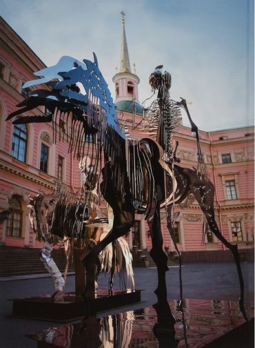 Having some engineering experience, Klyukin was able to experiment and derive a concept of connecting steel sheets on a non-existent, speculative axis without any actual fasteners. The principle of mobility of each individual piece was the basis for this technological innovation. Each sculpture created without physical fasteners is easily assembled and disassembled. This new experience brought new satisfaction. One of the statuettes done using the “live sculpture” technique, the Golden Madonnina, was used as the official award during Milan Design Week in 2017, a kind of Oscar for designers.