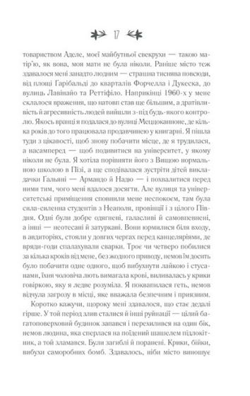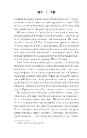 Елена Ферранте — італійський феномен сучасної літератури. Письменниця, яка не дала жодного інтерв’ю і жодного разу не з’явилася на публіці, але потрапила до сотні найвпливовіших людей світу за версією журналу «Тайм». Її книжки багато років не полишали топових позицій не тільки в італійських, а й у європейських та американських списках бестселерів.