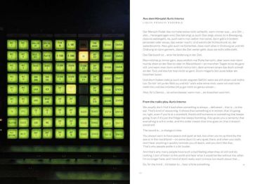 У цій книжці досліджуються головні теми та техніки радіо, створені митцями, що виникли на основі понад 20-річної практики багатьох художників у цій галузі. У ній зібрані уривки довготривалих радіоробіт з найбільшої у світі виставки радіомистецтва Radio Art Zone - спільного проекту дуету художників Mobile Radio (Сара Вашингтон і Кнут Ауферманн) та люксембурзької громадської станції Radio ARA, який транслювався протягом 100 днів у рамках програми культурної столиці Європи Esch2022. Поєднуючись із нещодавно створеними роботами - від мікроесеїв і текстів про форму, практику та поетику радіо до радіоп'єс та ілюстрацій, - вона сповнена унікальних образів, які дозволяють уяві розширюватися у радіопросторі. Radio Art Zone здійснює вишукану трансформацію з ефіру на папір, забезпечуючи скарбницю ідей та роздумів про радіо як мистецтво.