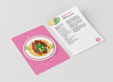 На кожній картці представлено різні рецепти, від класики, як-от Рахас Побланас і кукурудзяні тако, до несподіваних витворів, як-от курячий карааге, з основними інгредієнтами, які ви можете змішувати і поєднувати, щоб створити свій власний, ідеальний тако.