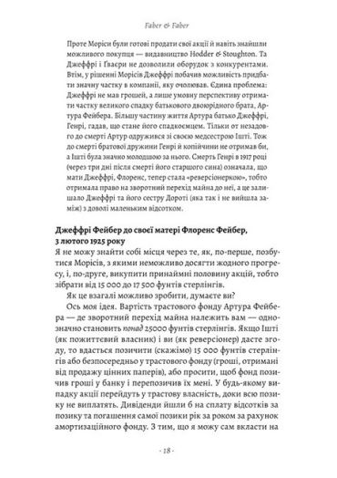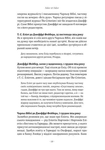 Читацькі нотатки Томаса Еліота, лайка і цензура у творчості Семюела Беккета, відмова від «Колгоспу тварин» Джорджа Орвелла, відкриття талантів Кадзуо Ішіґуро, Вільяма Ґолдінґа, Сильвії Плат та інших літературних суперзірок — все це синоніми видавництва Faber & Faber, заснованого у 1929 році в Блумзбері. Але як їх вдалось об’єднати і що насправді відбувалось за лаштунками маленької фірми, яка попри нестачі паперу, період Великої депресії й фінансові кризи, стала одним із найбільших незалежних видавництв у світі, що утримує свою першість і донині?