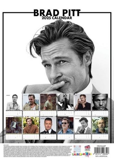 Get inspired by this beautiful spiral-bound Brad Pitt A3 Calendar for 2025, from renowned brand Calendars R Us. Made from high-quality glossy paper, this calendar starts in January 2025 and runs through December 2025, with each month featuring a large, stunning photo and that month?s key dates. The texts on the calendar are in English, giving this calendar an international touch.