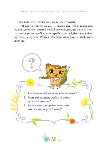 - Наприкінці кожної історії розміщено по три запитання, які спонукатимуть читача до висловлення власної думки щодо прочитаної історії