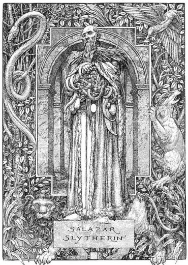 У перший рік навчання Гаррі у Гоґвортсі ми знайомимося з персонажами, без яких Слизерин годі й уявити — вихователем Северусом Снейпом, привидом Кривавим Бароном, а Сортувальний Капелюх відправляє першокласників, включно з Драко Мелфоєм, Вінсентом Кребом та Ґреґорі Ґойлом, до славного гуртожитку, заснованого Салазаром Слизерином.