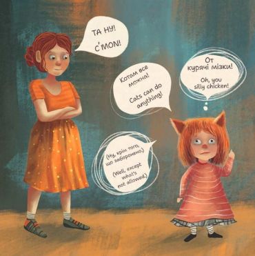 Що якби киця могла гавкати? Або цвірінькати, мукати й пищати? Ого! Дівчинка уявляє себе такою кицею — сміливою, безстрашною, що ламає всі котячі стереотипи! Тут не просто «няв» — тут «цвірінь», «м-у-у-у» і навіть «гав»!