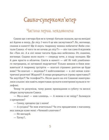 Сашко понад усе на світі захоплювався віртуальними іграми й жити не міг без своїх ноута, планшета і смартфона. Так би, може, й пропав у мережі, якби одного разу сусідка не попросила про допомогу. Треба було вигуляти замість неї собачку — чорну, кудлату й неймовірно прудку шкодницю на ім’я Пожажердіна. Мало-помалу Сашко й Пожежа, як для зручності перейменував її хлопець, здружилися і пережили чимало цікавущих пригод — значно яскравіших за будь-які комп’ютерні ігри.
