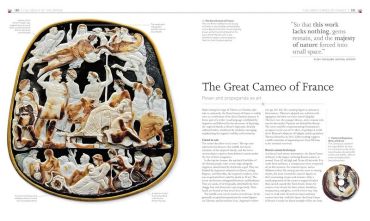- Themed spreads explore developments in areas such as sculpture, religion, warfare, and engineering.