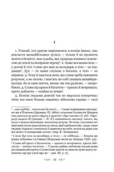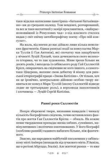 Ґай Саллюстій Крісп (бл. 86 р. до Р. Х. — бл. 35 р. до Р. Х.) — чільний римський історіограф, видатний стиліст, реформатор жанру. Тонкий психолог і майстер підозри, Саллюстій захоплював і надихав своїми творами не одне покоління європейських істориків, письменників та філософів — від Таціта до Момзена, від Сенеки до Ніцше. «Змова Катіліни» — дебютна монографія автора, присвячена подіям 63 р. до Р. Х., коли збіднілий патрицій Луцій Серґій Катіліна спробував учинити в Римі збройний переворот і захопити державну владу.