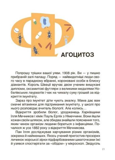 Ви дізнаєтесь: про перші у світі авіалайнер та електричний трамвай; як було відкрито імунітет і нову форму життя; хто навчив човни літати і створив лампу, що просвічує наскрізь; чому форма військових і шкіра жирафи плямисті, а ще багато-багато іншого цікавого і таємничого. Розгортайте книжку, підживлюйте свою допитливість, здобувайте нові знання й робіть власні відкриття і винаходи!
