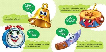 Це збірка чудових віршиків, які знайомлять малюка зі звуками навколишнього світу. Тварини, музичні інструменти, побутові речі й навіть сили природи спілкуються з дитиною і розвивають її мовлення. Разом із героями книжки маля чує й вчиться повторювати вигуки.