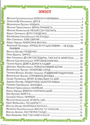 У книжці зібрані кращі оповідання відомих авторів. Вони вчать маленьких читачів відрізняти гарні вчинки від недобрих, бути чемними, поважати старших, захищати менших.
