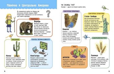 Чи знає ваша дитина щось про Антарктиду? А де у світі найвища гора? А де батьківщина шоколаду? Цей атлас — найкращий для знайомства малечі з географією, з якою легко все це дізнатися. Тут показано особливості материків, океанів і країн планети Земля. Усередині є 8 мап з картинками, що позначають рослини й тварин, які є в різних частинах світу, товари, які люди там виробляють, і найяскравіші пам’ятки. З таким атласом дитина зрозуміє, що робить кожну країну унікальною.