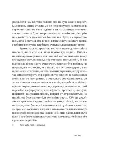 Кожна історія — це ядучий і водночас гіркий погляд на життя в умовах диктатури: «Стілець» розповідає про всевладного диктатора і його безславний кінець, в «Ембарґо» воля людини підкорюється її матеріальним потребам, у «Рефлюксі» неназваний король намагається викорінити смерть, а в кафкіанських «Речах» здоров’я і навіть життя містян перебувають під загрозою, бо речі навколо відмовляються виконувати свої функції.