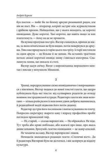 Андрій Курков (нар. 1961 р.) — український письменник, журналіст, кіносценарист. Член Українського ПЕН-клубу та почесний член ПЕН-клубу Бельгії. Почесний академік Американської Академії мистецтв і літератури (Нью-Йорк), Лауреат національної премії «Медічі» (Франція) за кращий іноземний роман 2022 року. Його твори перекладені 45 мовами світу, включно з японською, арабською, тайською.