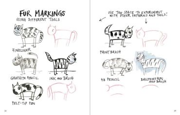 A wide variety of cat portraits can be created in no time at all: from minimalist sketches to complete small paintings. You will quickly be able to get your four-legged friends moving (or just let them hang out), capture their emotions and tell little stories in an uncomplicated way. It's doesn't matter if they look realistic; it’s about having the courage to experiment and just start doodling.