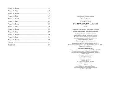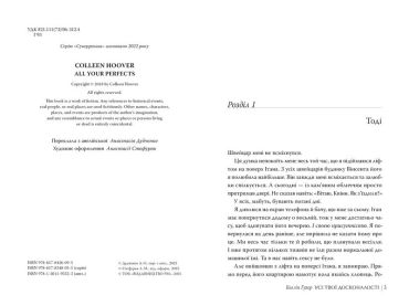 «Усі твої досконалості» — глибокий роман про пару на межі розлучення. Майбутнє цього подружжя залежить від здатності попри все дотриматися обіцянок, даних у минулому. Чи може яскраве кохання з досконалим початком тривати все життя між двома недосконалими людьми?