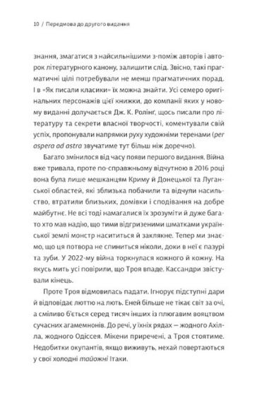 Книга підсумовує погляди на художню творчість мегапопулярних Аґати Крісті, Джорджа Орвелла, Рея Бредбері, Курта Воннеґута, а також ближчих до нас у часі Мілана Кундери, Маріо Варґаса Льйоси й Умберто Еко. А в це друге, оновлене та доповнене, видання автор додав окремий розділ про письменницькі лайфгаки Джоан Ролінґ.