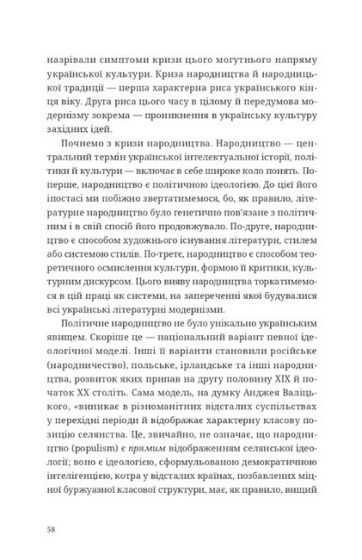 Авторка аналізує дискурс українського модернізму, починаючи від 1898 року до 1970-х років, на прикладах творчості Лесі Українки, Ольги Кобилянської, Гната Хоткевича, Михайла Яцкова, представників «Молодої Музи» й «Української хати», письменників 20-х років, найрепрезентативніших постатей еміграційної літератури 40-х років, а також Нью-Йоркської групи 60-х і 70-х років.