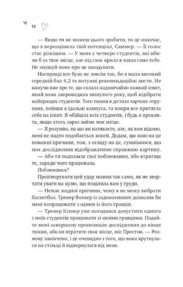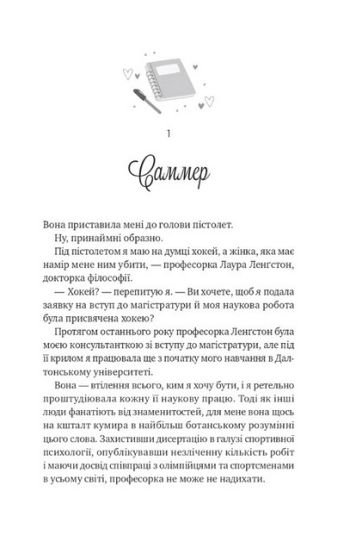 Саммер Престон — відмінниця з амбітними планами. Вона мріє стати спортивною психологинею та вступити до аспірантури. Для цього дівчині потрібно зробити хокей темою дослідження. Саммер ненавидить цю гру, однак наукова консультантка ставить перед нею ультиматум: або вона долає своє упередження, або втрачає місце в аспірантурі. Тим часом необачна помилка капітана хокейної команди Ейдена Кроуфорда ставить під загрозу весь сезон. Тому тренер придумує для нього справжнє покарання: хлопець стане головним об’єктом дослідження Саммер. Це — останнє, що він хотів би робити, тим паче що дослідниця неначе готова пожбурити в нього ковзанами. Та й сам Ейден цілковито підтверджує найгірші припущення Саммер про хокеїстів — думає лише про гру, запальний, безцеремонний. Їм доведеться терпіти одне одного, допоки пристрасть між ними не розтопить лід.