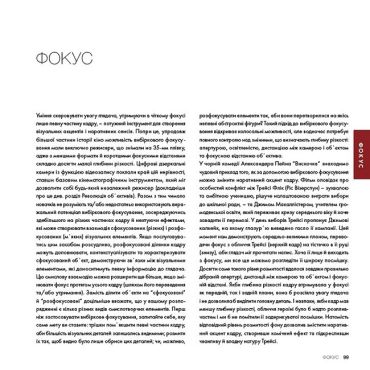 Ця книга є посібником для режисерів, операторів і всіх, хто цікавиться мистецтвом створення фільмів. У ній детально описано, як вибір об'єктива впливає на композицію кадру, сприйняття сцени, емоційний тон і наратив. Автор аналізує різні приклади з кіно, ілюструючи, як специфічні лінзи використовуються для досягнення художніх та технічних цілей.Книга підходить як для початківців, так і для професіоналів, які хочуть розширити свої знання в галузі кіномистецтва. Вона містить багато прикладів кадрів з культових фільмів (“Субмарина”, “Гаррі Поттер і таємна кімната”, “Джанґо вільний”, “Зоряний шлях” та інші) з поясненнями, які допомагають зрозуміти складний вплив оптики на кінематографічний стиль.