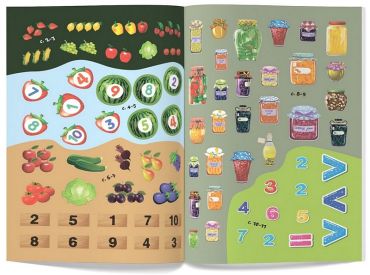 Хутчіш зазирни в нашу книжку, щоб познайомитись із цифрами. Ти дізнаєшся, як вони пишуться, навчишся рахувати й порівнювати числа. А допоможуть тобі в цьому 79 барвистих розвивальних наліпок. Використовуй як підказку зазначені поруч із ними номери сторінок.
