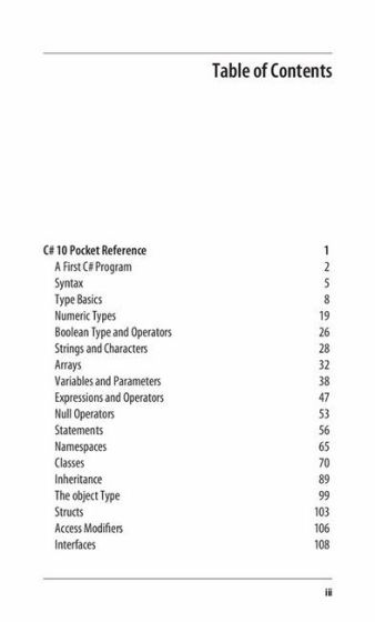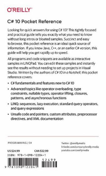 Looking for quick answers for using C# 10? This tightly focused and practical guide tells you exactly what you need to know without long intros or bloated samples. Succinct and easy to browse, this pocket reference is an ideal quick source of information. If you know Java, C++, or an earlier C# version, this guide will help you get rapidly up to speed.