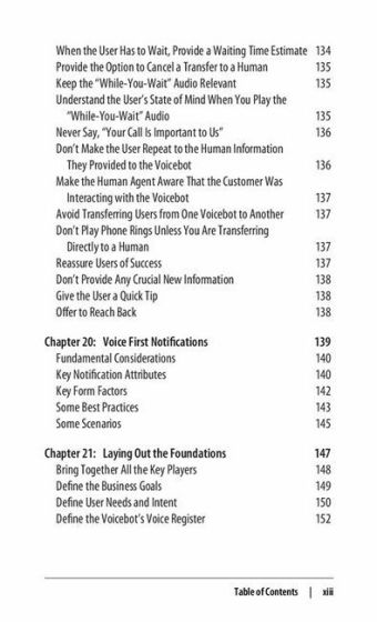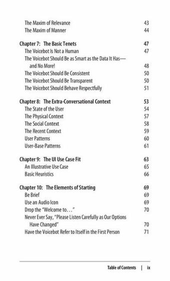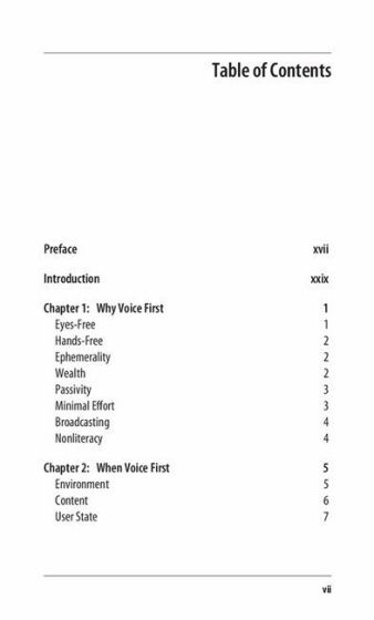 The target readers of this book are budding and practicing voicebot designers in the newly emerging technology space of far-field voice, as delivered by platforms such as Amazon Echo and Google Assistant, and hearable/speakable technologies, such as Apple’s AirPods. The book can also be useful for those who design IVR systems, but only to the extent that those systems are used eyes-free and hands-free.While this book is meant primarily to help voicebot designers think through and make sound design decisions, we have written the book explicitly to be highly readable and jargon-free so that it is also accessible to those colleagues who work with a designer: user experience (UX) researchers, product managers, developers, testers, marketers, and business development professionals.
