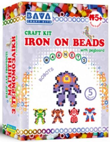 С помощью нашего набора Вы сможете сделать 5 ярких и красочных магнитов из термомозаики. Соберите на планшете фигурки по схемам, прогладьте утюгом через термобумагу, приклейте магнитную ленту и магнит готов! Для детей от 5 лет.