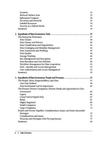Chief information, data, and security officers and their teams will learn strategy and tooling to support democratizing data and unlocking its value while enforcing security, privacy, and other governance standards. Through good data governance, you can inspire customer trust, enable your organization to identify business efficiencies, generate more competitive offerings, and improve customer experience. This book shows you how.