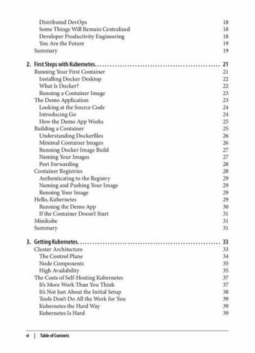 Experienced Kubernetes users should still find much valuable material in the book: it covers advanced topics such as RBAC, continuous deployment, secrets management, and observability. Whatever your level of expertise, we hope you’ll find something useful in these pages.