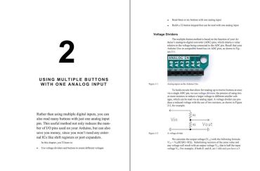 You’ll remote-control your Arduino via Bluetooth and instant messaging, improve the accuracy of clock projects with internet time servers, and automatically turn your Arduino off when it completes a task. You’ll safely control AC mains power and higher currents and conserve battery with low-power and sleep modes. You’ll also use Charlieplexing to control LED matrix displays, keep your Arduino running with a watchdog timer, communicate over longer wired distances with the RS232 and RS485 buses, and much more.