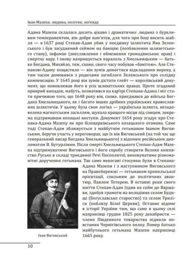 Іван Мазепа (1639—1709) — одна з тих знакових постатей української історії, життя та вчинки котрих і сьогодні викликають палкі суперечки. Мало кому випала така цікава й непроста доля за життя та після смерті. Приятель Петра І, один з перших кавалерів найвищого російського ордену Андрія Первозванного — і борець за інтереси Української козацької держави; будівничий величних соборів — і «Юда», відлучений від церкви, підданий анафемі, що проголошувалася з амвонів тих же соборів; неймовірно обережний майстер складних дипломатичних ігор — і людина, що зуміла поставити на карту все і, зрештою, програла найголовнішу й найризикованішу гру свого життя; блискучий світський кавалер у дусі розкішного, неповторного XVII століття, улюбленець жіноцта — і чи не єдиний справді обдарований поет і музикант серед українських гетьманів... Про Мазепу ніколи не забували (хоч як не пригадати пушкінське з «Полтави» «Забыт Мазепа с давних пор...») і прихильники, і супротивники української ідеї. Той, хто прочитає цю книгу, зможе створити свій власний варіант образу гетьмана Мазепи — одного з найколорітніших, найцікавіших українців за всю історію нашої країни.
