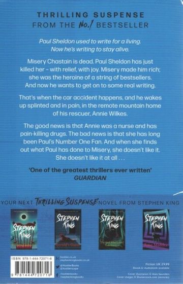 Misery Chastain is dead. Paul Sheldon has just killed her - with relief, with joy. Misery has made him rich; she was the heroine of a string of bestsellers. And now he wants to get on to some real writing.