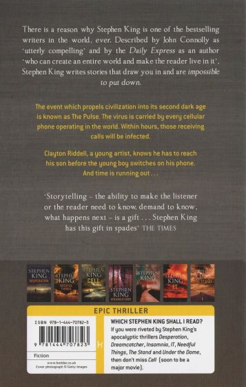The event which propels civilization into its second dark age is known as The Pulse. The virus is carried by every cellular phone operating in the world. Within hours, those receiving calls will be infected.