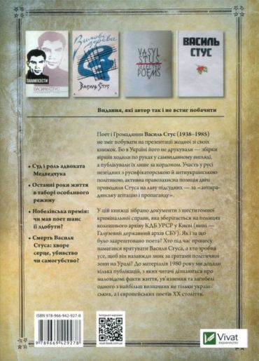 Правда про кримінальну справу, життя і смерть Василя Стуса. У книжці зібрано архівні документи з кримінальної справи Василя Стуса, покази свідків, листи поета з тюрми, спогади його рідних та друзів. Ознайомившись із наведеними матеріалами, читачі дізнаються про невідомі факти щодо життя, ув'язнена язнення та загибелі Стуса, які досі охороняли під грифом «Таємно».