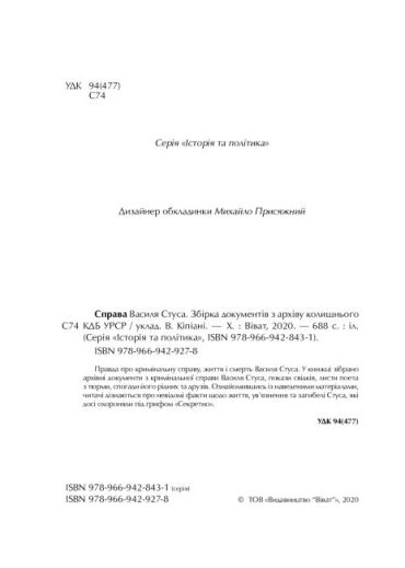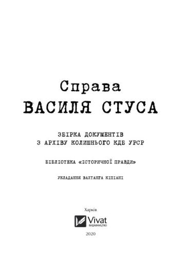 Про видання. Книга Ст. Кіпіані "Справа Василя Стуса" на 90% складається з архівних документів. Думки автора побудовані на фактах, які містяться, у тому числі, у фактологічній частині книги.