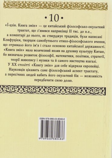 «І-цзін. Книга змін» — це китайський філософсько-окультний трактат, що з'єднання явився наприкінці II тис. до н. е., а коментарі до нього, як стверджує традиція, були написані Конфуцієм, творцем самобутнього етико-філософського вчення, що отримало його ім'я і стало основою китайської державності.