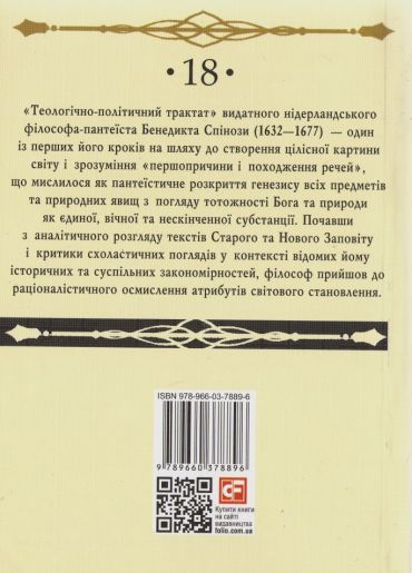 «Теологічно-політичний трактат» видатного нідерландського філософа-пантеїста Бенедикта Спінози (1632-1677) — один із перших його кроків на шляху до створення цілісної картини світу і зрозуміння «першопричини і походження речей», що мислилося як пантеїстичне розкриття ґенези всіх предметів та природних явищ з погляду тотожності Бога та природи як єдиної, вічної та нескінченної субстанції. Почавши з аналітичного розгляду текстів Старого та Нового Заповіту і критики схоластичних поглядів у контексті відомих йому історичних та суспільних закономірностей, філософ прийшов до раціоналістичного осмислення атрибутів світового становлення.