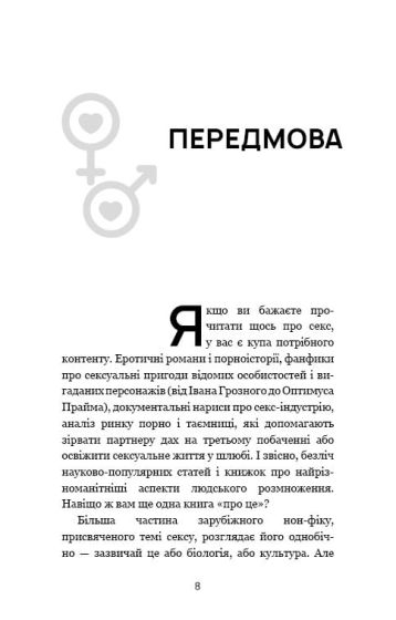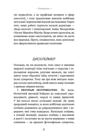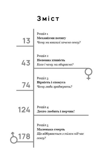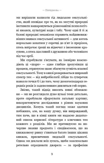 Автори книги поставили собі за мету пояснити читачам механізми внутрішніх законів людського тіла і розуму, які зумовлюють фізичне бажання і формують сексуальні вподобання. Ви також дізнаєтеся, що впливає на наше ставлення до сексу. Тими розглянуті в цій книзі охоплюють широкий спектр питань від лібідо до точки G і порно.
