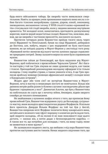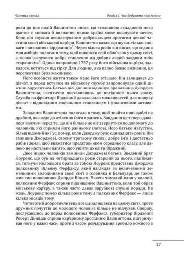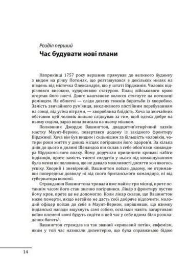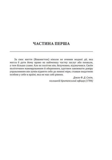 Автор детально описав життєвий шлях першого президента США, створив реалістичний портрет найважливішого лідера Америки. Вашингтон був обраний президентом США у 1789 році й працював на цій посаді два терміни, до 1797 року. Багато традицій президента, які зберігаються досі, встановив саме Вашингтон. За його президентства була створена двопартійна система, заснований Перший банк США. Вашингтон постає перед читачем звичайною людиною, плантатором, який протягом життя став великим політиком і був обраний на найвищу посаду країни.