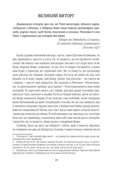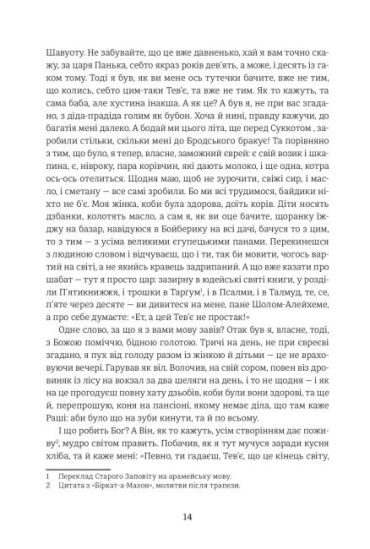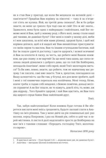 Смішна і трагічна історія Тев’є, молочара з єврейського містечка (штетля), лягла в основу чи не найпопулярнішого бродвейського м’юзикла «Скрипаль на даху» та його численних кіно- та театральних варіацій. Нескінченно мудрі, насичені особливим гумором історії Тев’є звернені нібито до автора, а насправді до кожного особисто. Вони — не лише про штетль, жінок та дружину Тев’є, його сусідів, вони — про дивовижну красу непростого життя загалом.
