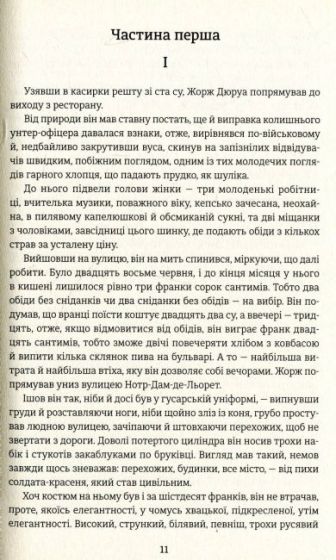 У центрі відомого роману французького письменника Гі де Мопассана — постать авантюриста, який мріє зробити блискучу кар'єру. Доля не наділила його жодним талантом, окрім хіба гнучкого сумління. Привабливий й улесливий, юнак виявляє, що може підкорити серце будь-якої жінки, тож користається з цього радо, хай хто перед ним: дружина друга, чи мати й донька одночасно. Ім’я головного героя, Жоржа Дюруа, на роки стало синонімом успішної безпринципності.